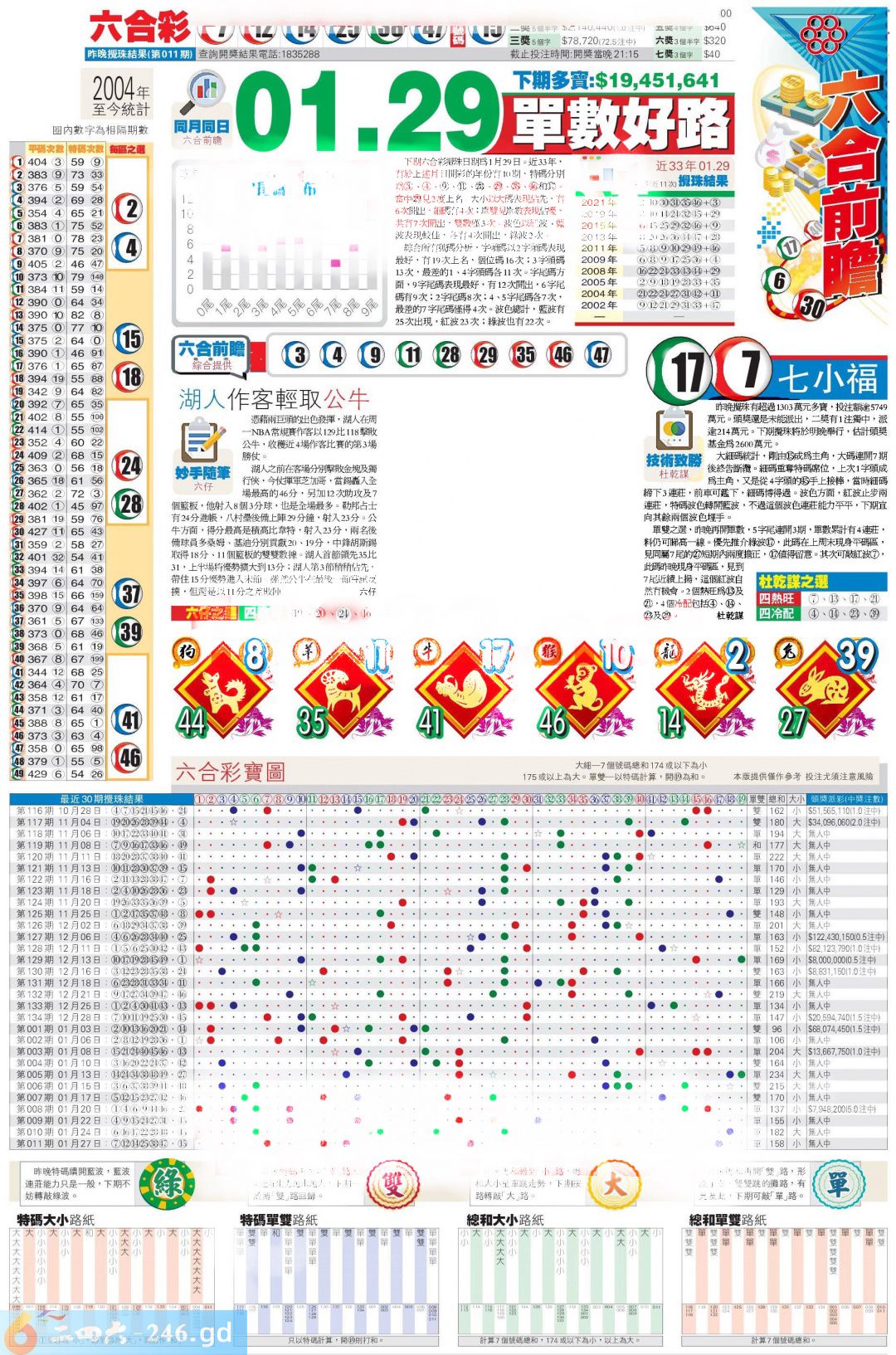 六合彩012期:无错36码