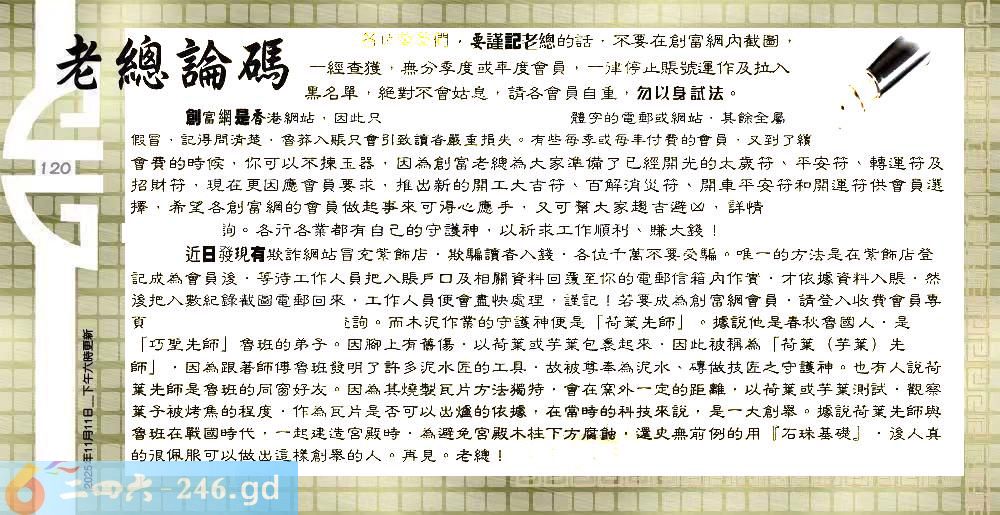 六合彩120期:六合皇金句/老总论码/萧公子/林大师/五行夺码/老总信箱截图