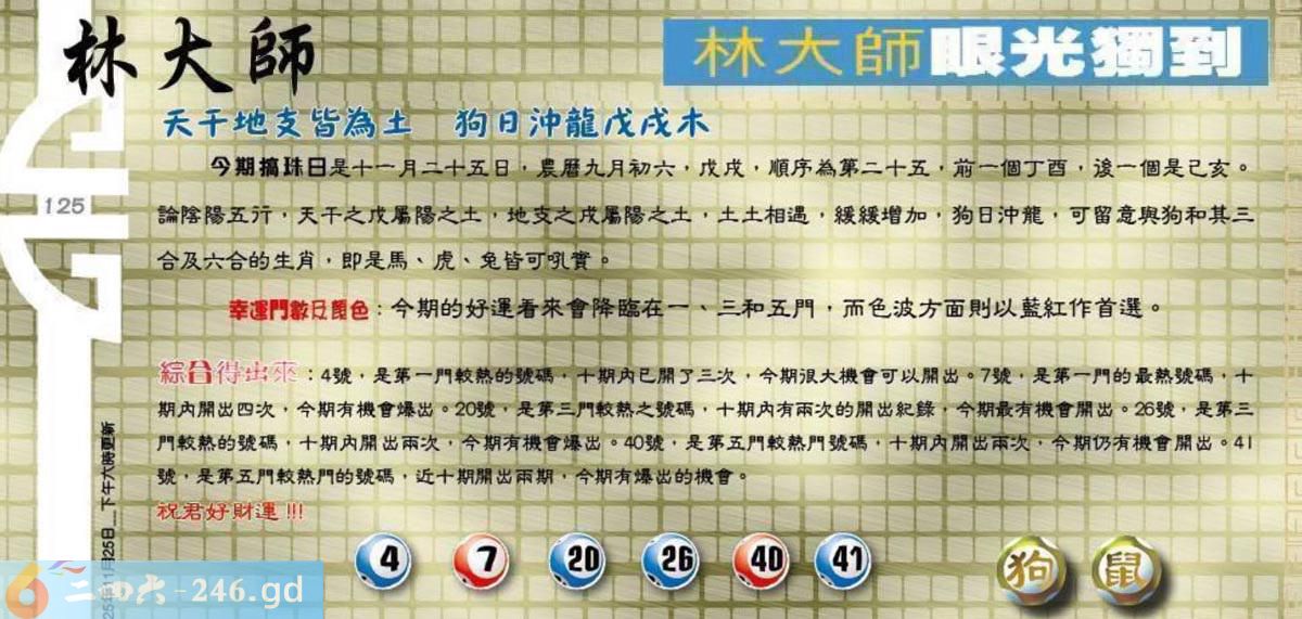 六合彩125期:彩图挂