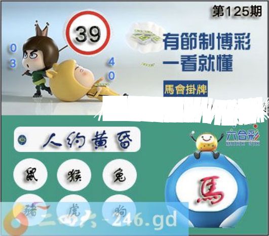 六合彩2025年125期正版彩图挂:39 爆:马 挂牌成语:人約黃昏 挂牌出肖:鼠猴兔猪虎狗