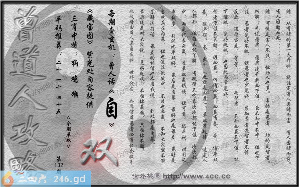 132期藏寶圖 新:金缕香消春不管 老:留住玖华云壹片 禁:鼠禁:4尾玄機字:《自》