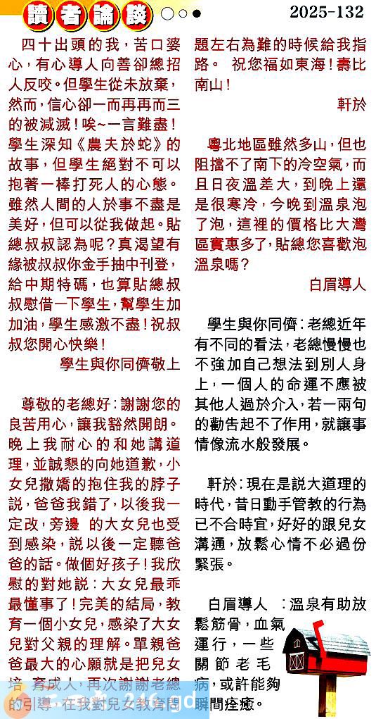 第一三二期讀者論談