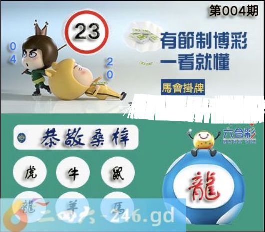 六合彩2026年004期正版彩图挂:23 爆:龙 挂牌成语:恭敬桑梓 挂牌出肖:虎牛鼠龙羊马