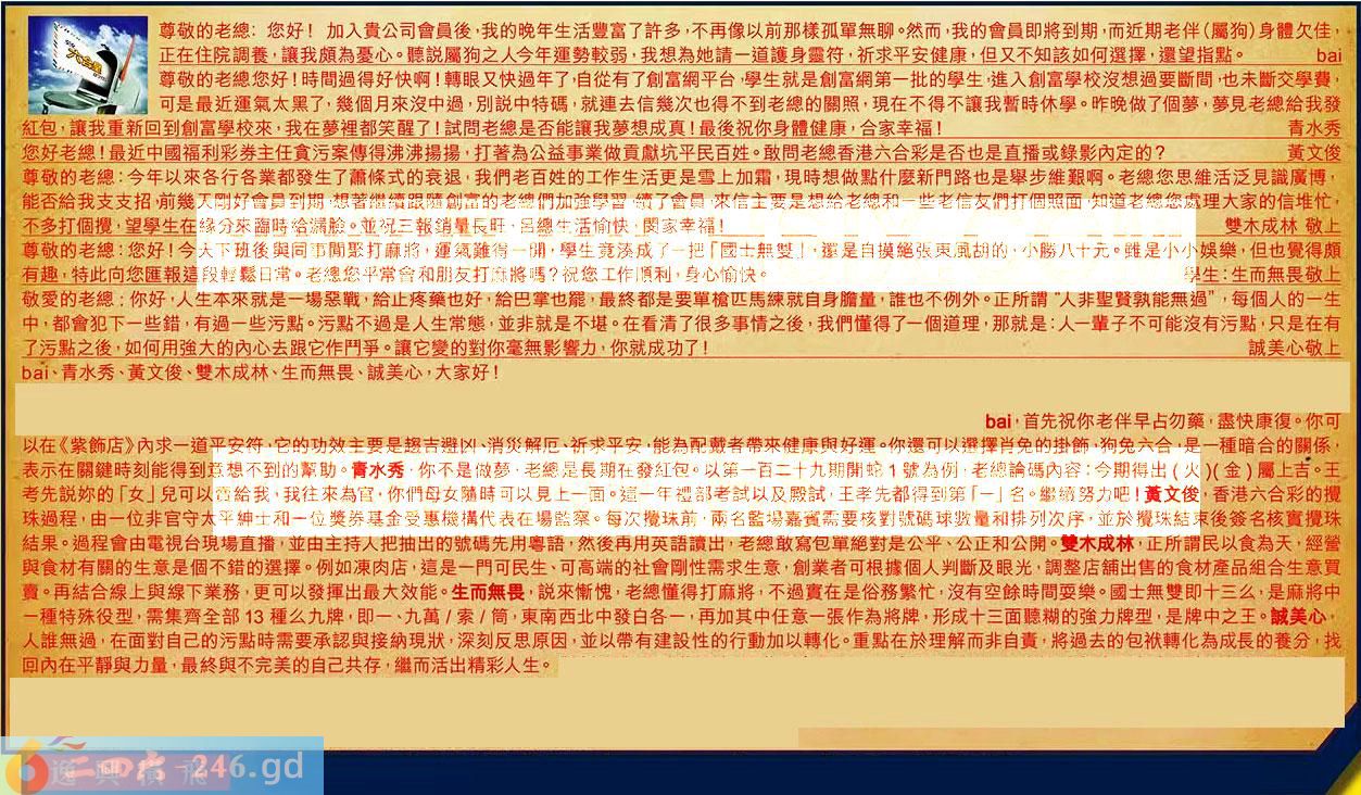 第134期《六合皇信箱文字版》10000%正確!!!正版二四六論壇*精心製作!!! 、青水秀、黄文俊、雙木成林、生而無畏、誠美心,大家好! 【1】.尊敬的老總:您好!加入貴公司會員後,我的晚年生活豐富了許多,不再像以前那樣孤單無聊。然而,我的會員即將到期,而近期老(屬狗)身體欠佳,正在住院調養,讓我頗為憂心。聽說屬狗之人今年運勢較弱,我想為她請一道護身靈符,祈求平安健康,但又不知該如何選擇,還望指點。 〖〗:首先祝你老伴早占勿藥,盡快康復。你可以在《紫飾店》內求一道平安符,它的功效主要是趨吉避凶、消災解厄、祈求平安,能為配戴者帶來健康與好運。你還可以選擇肖兔的掛飾,狗兔六合,是一種暗合的關係,表示在關鍵時刻能得到意想不到的幫助。 【2】.尊敬的老總您好!時間過得好快啊!轉眼又快過年了,自從有了創富網平台,學生就是創富網第一批的學生,進入創富學校沒想過要斷間,也未斷交學費,可是最近運氣太黑了,幾個月來沒中過,別說中特碼,就連去信幾次也得不到老總的關照,現在不得不讓我暫時休學。昨晚做了個夢,夢見老總給我發紅包,讓我重新回到創富學校來,我在夢裡都笑醒了!試問老總是否能讓我夢想成真!最後祝你身體健康,合家幸福!青水秀 〖青水秀〗:你不是做夢,老總是長期在發紅包。以第一百二十九期開蛇1號為例,老總論碼內容今期得出(火)(金)屬上吉。王考先說你的「女」兒可以賣給我,我往來為官,你們母女随時可以見上一面。這一年禮部考試以及殿試,王孝先都得到第金一」名。繼續努力吧! 【3】.您好老總!最近中國福利彩券主任貪污案傳得沸沸揚揚,打著為公益事業做貢獻坑平民百姓。敢問老總香港六合彩是否也是直播或錄影內定的?黄文俊 〖黄文俊〗:香港六合彩的攪珠過程,由一位非官守太平紳土和一位獎券基金受惠機構代表在場監察。每次攪珠前,兩名監場嘉實需要核對號碼球數和排列次序,並於攪珠結束後簽名核實攪珠結果。過程會由電視台現場直播,並由主持人把抽出的號碼先用粤語,然後再用英語讀出,老總敢寫包單絕對是公平、公正和公開。 【4】.尊敬的老總:今年以來各行各業都發生了蕭條式的衰退,我們老百姓的工作生活更是雪上加霜,現時想做點什麼新門路也是舉步維艱啊。老總您思維活泛見識廣博,能否給我支支招,前幾天剛好會員到期,想著繼續跟隨創富的老總們加強學習,續了會員,來信主要是想給老總和一些老信友們打個照面,知道老總您處理大家的信堆忙,不多打個攪,望學生在緣分來臨時給漏臉。並祝三報銷量長旺,吕總生活愉快,閔家幸福雙木成林敬上 〖雙木成林〗:正所謂民以食為天,經營與食材有關的生意是個不錯的選擇。例如凍肉店,這是一門可民生、可高端的社會剛性需求生意,創業者可根據個人判斷及眼光,調整店铺出售的食材產品組合生意買賣。再結合線上與線下業務,更可以發揮出最大效能。 【5】.尊敬的老總:您好!今天下班後與同事閒聚打麻將,運氣難得一開,學生竟凑成了一把「國士無雙」還是自摸絕張東風胡的,小勝八十元。雖是小小娱樂,但也覺得頗有趣,特此向您匯報這段輕鬆日常。老總您平常會和朋友打麻將嗎?祝您工作順利,身心愉快。學生:生而無畏敬上 〖生而無畏〗:說來慚愧,老總懂得打麻將,不過實在是俗務繁忙,沒有空餘時間耍樂。國士無雙即十三么,是麻將中一種特殊役型,需集齊全部13種么九牌,即一、九萬/1索/筒,東南西北中發白各一,再加其中任意一張作為將牌,形成十三面聽糊的強力牌型,是牌中之王。 【6】.敬愛的老總:你好,人生本來就是一場惡戰,給止疼藥也好,給巴掌也罷,最終都是要單槍匹馬練就自身瞻量,誰也不例外。正所謂“人非聖賢孰能無過”,每個人的一生中,都會犯下一些錯,有過一些污點。污點不過是人生常態,並非就是不堪。在看清了很多事情之後,我們懂得了一個道理,那就是:人一辈子不可能沒有污點,只是在有了污點之後,如何用強大的內心去跟它作鬥爭。讓它變的對你毫無影響力,你就成功了!誠美心敬上 〖誠美心〗:人誰無過,在面對自己的污點時需要承認與接納現狀,深刻反思原因,並以帶有建設性的行動加以轉化。重點在於理解而非自責,將過去的包袱轉化為成長的養分,找回內在平靜與力量,最終與不完美的自己共存,繼而活出精彩人生。 紅字:逸興橫飛 暗码:02313341 [释义]指超逸豪放的意兴勃发飞扬。 [出处]语出唐王勃《滕王阁序》:“遥襟俯畅,逸兴遄飞。”