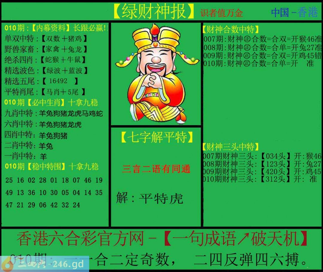 六合彩010期:绿色财神