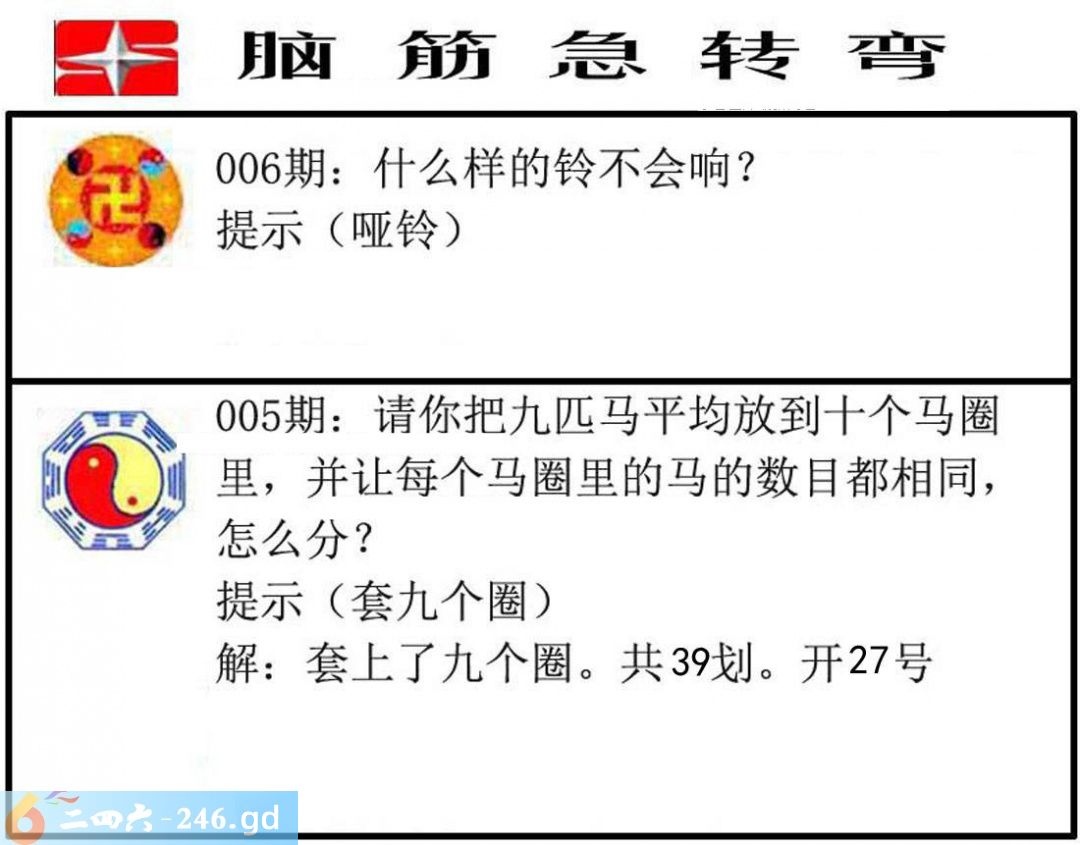 六合彩006期:脑筋急转弯